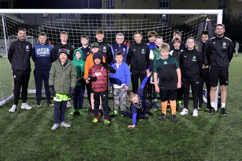 The week kicked off at the Trust’s flagship sports hub at Manadon. Argyle players Will Jenkins-Davies and Jack Endacott, Argyle Women players Zoe Cunningham and Panagiota Papaioannou, and Argyle Women Manager Ryan Perks gave members of Junior Ability Counts an unforgettable evening under the floodlights at Manadon’s state-of-the-art 3G pitch.