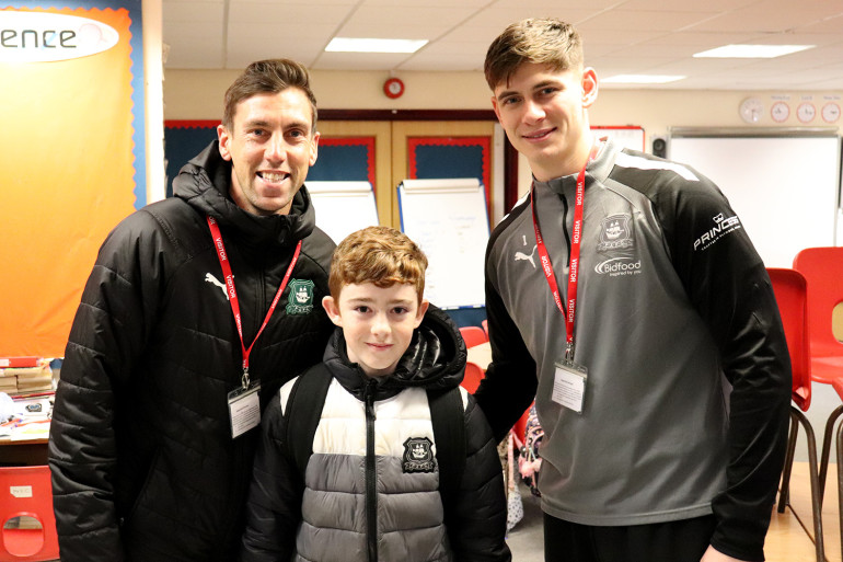 Argyle number one Michael Cooper and Club Ambassador Gary Sawyer paid a visit to Horrabridge Primary and Nursery School in Yelverton, to the delight of students and staff alike, to support a new education project – Healthy Habits. The initiative is a combination of classroom and physical education based learning, teaching young people about Project 35 and its successes, food, healthy eating, and social action, and outdoor sessions, promoting at-home and low-cost activities to keep young people healthy and active.