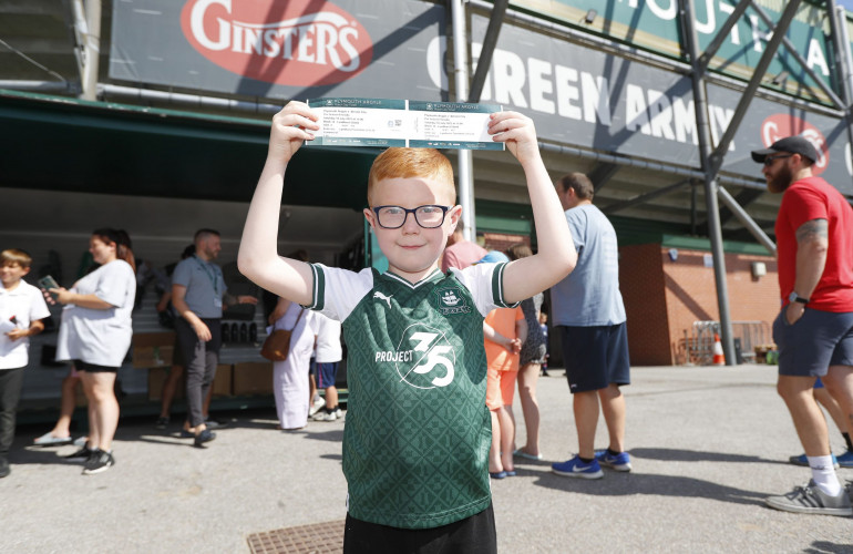 162 brand new home shirts were presented to children of Princess employees ahead of the 2022/23 Sky Bet League One season. Special guests were in attendance with Argyle first-team players Conor Grant, James Bolton and Callum Burton welcoming families and posing for photos at the PUMA retail outlet outside the Devonport End, before Pilgrim Pete delighted the youngsters with an appearance In the Mayflower Grandstand.