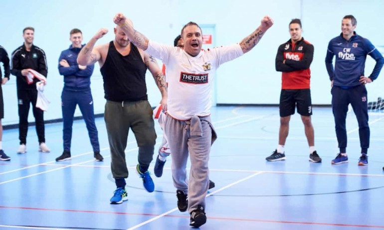 There is a fiercely contested drop-ball during a five-a-side kickabout with a difference. Behind the barbed wire and through the giant blue main gate at HMP Exeter, in the gymnasium perched round the back of C wing, where a pair of tracksuit bottoms are drying out of the window of cell 32, a handpicked group of offenders are taking on a team comprising professional footballers from Devon rivals Exeter City and Plymouth Argyle. “Nice and fair,” says Mike Reece, one of five prison officers who specialise in physical education here, as the game restarts.