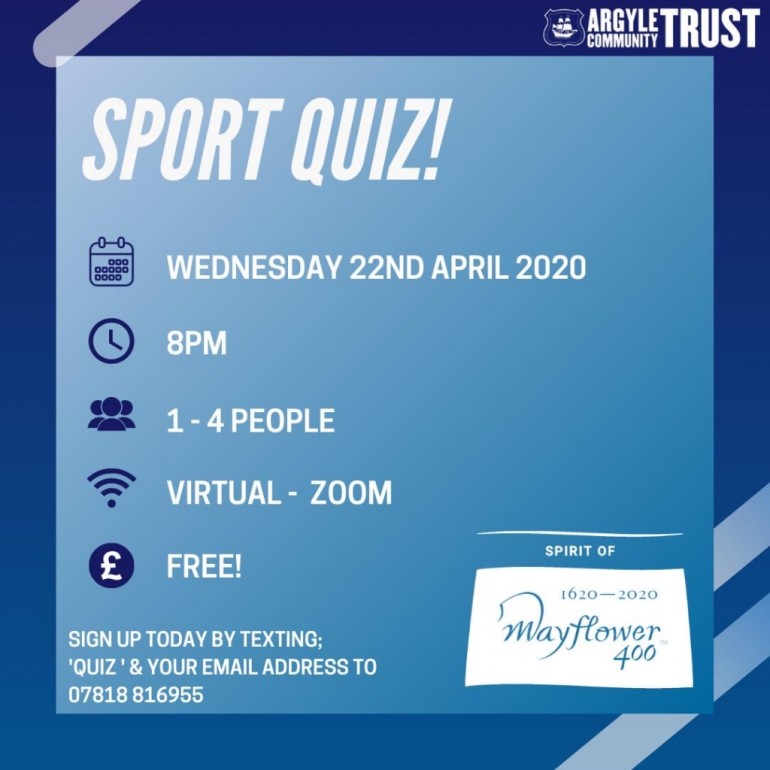 The current COVID-19 outbreak has brought a halt to the majority of ongoing programmes in the Mayflower 400: Get Active campaign of sport and wellbeing. However, on Wednesday 22nd April 2020 at 8pm, we would like to invite you to test your sporting knowledge, virtually, against your peers from around the city. Compete on your own or as a family, this friendly competition is going to bring a testing sense of enjoyment to everyone involved.